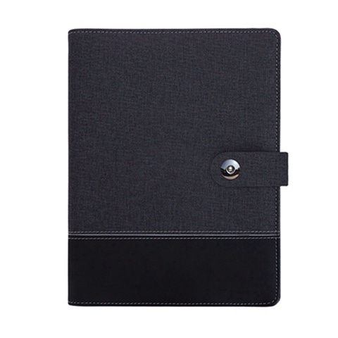 产品描述: 产品包含:充电笔记本 颜 色:黑灰拼接色 封面材质:皮革+棉麻皮 本子尺寸:240*180*38 mm(A5) 内页纸张:100g 象牙白(90张) 本子重量:700g 电源容量:8000mAh